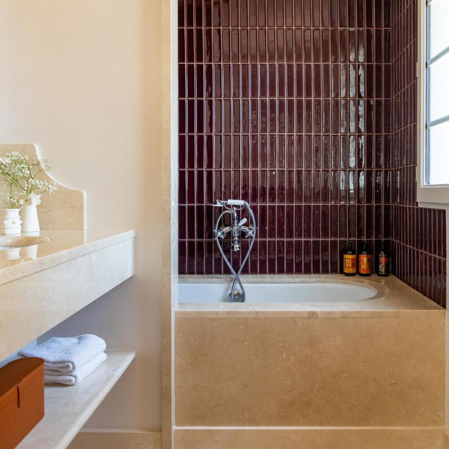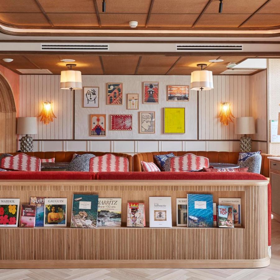 Detrás de su fachada tradicional, el hotel revela una decoración interior audaz, diseñada por el estudio madrileño Cousi-Interiorismo. Los tonos cálidos de terracota, marrones tabaco y rojos profundos se combinan con materiales nobles y texturas inspiradas en los célebres tejidos de la Maison Casa Lopez. Cada espacio, ya sean las habitaciones o las áreas comunes, ha sido pensado para ofrecer un ambiente acogedor y relajante, al tiempo que celebra el dinamismo y los contrastes culturales propios de Biarritz.