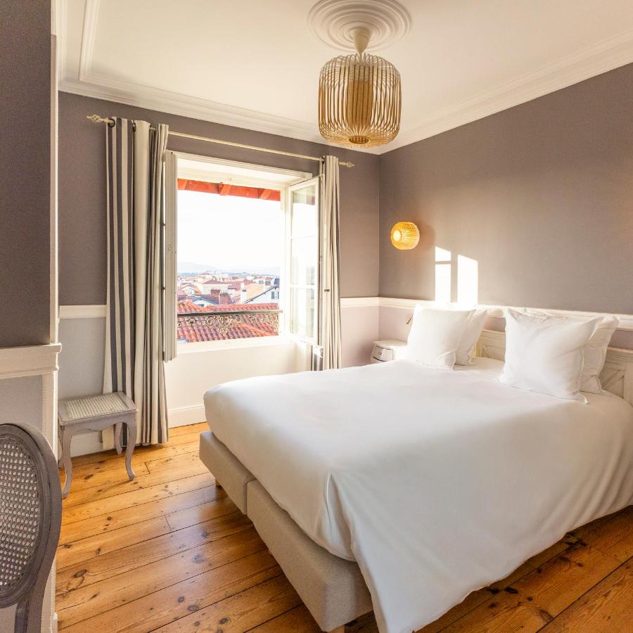 El Hôtel Saint Julien encarna una atmósfera elegante y acogedora, perfecta para una escapada relajante en el corazón de la ciudad. Ubicado en un edificio del siglo XIX, este establecimiento ha sabido conservar su encanto de antaño mientras se modernizaba gracias a una reciente renovación que duró siete meses. Detrás de su fachada blanca con contraventanas rojas, característica de la arquitectura vasca, se descubre un lugar de vida apacible donde cada detalle ha sido cuidadosamente pensado. Las 26 habitaciones, de las cuales seis fueron renovadas recientemente, ofrecen una variedad de configuraciones adaptadas a todos los tipos de viajeros, ya sean parejas, familias o personas en busca de tranquilidad.