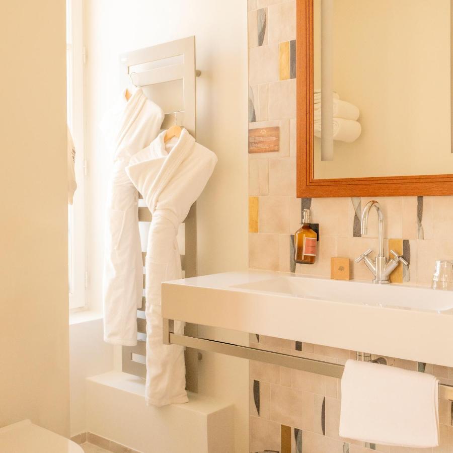 El Hôtel Saint Julien seduce por su armonía entre tradición y modernidad. La reciente renovación permitió preservar los elementos históricos del edificio, al tiempo que añadía un toque contemporáneo y de diseño. Los espacios comunes, como la sala del desayuno o los salones, han sido decorados con gusto, mezclando materias primas con textiles suaves y colores apacibles. Los aficionados a la decoración apreciarán el trabajo minucioso realizado para sublimar la autenticidad del lugar.