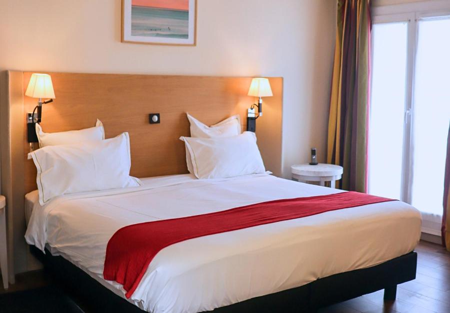 Las 64 habitaciones y la Junior Suite del Grand Tonic Hotel & Spa Nuxe han sido diseñadas para responder a las variadas expectativas de los viajeros, ya sea que busquen relajación, descubrimientos o momentos románticos. Cada habitación invita al descanso con ropa de cama de alta calidad y equipamientos modernos, incluyendo una caja fuerte, televisor de pantalla plana y conexión Wi-Fi gratuita. La disposición de los baños, a menudo equipados con bañera de hidromasaje, refleja una mezcla de estilos con azulejos en blanco y negro en damero o acabados en mármol moderno. Algunas habitaciones se abren a un pequeño balcón, perfecto para disfrutar del aire marino y el encanto de la ciudad. Para una experiencia aún más exclusiva, la Junior Suite ofrece un hammam privado y una terraza con vistas relajantes de la ciudad.