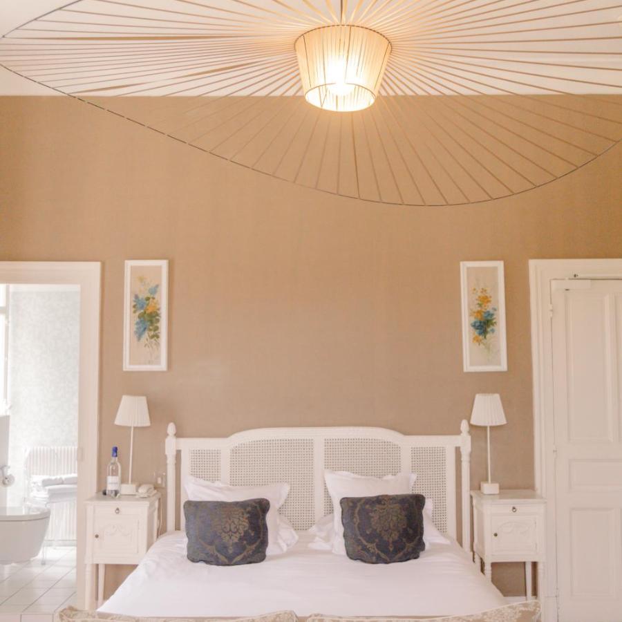L'hotel offre diciotto camere distribuite tra l'edificio principale, chiamato il Castello, e il Padiglione di Caccia. Ognuna di esse porta un nome evocativo e unico, a immagine della loro decorazione curata. Al Castello, scoprirete camere spaziose con soffitti alti, pavimenti originali e mobili d'epoca. I dettagli sono pensati per riflettere l'eleganza dell'inizio del XX secolo, integrando al contempo attrezzature moderne come una TV a schermo piatto, una macchina Nespresso e prodotti di benvenuto di alta gamma. Le camere del Padiglione, situate a pochi passi, offrono un'atmosfera più contemporanea, con terrazze private che permettono di godere del giardino.